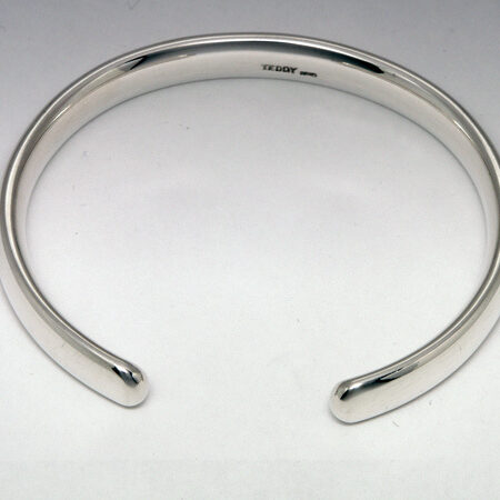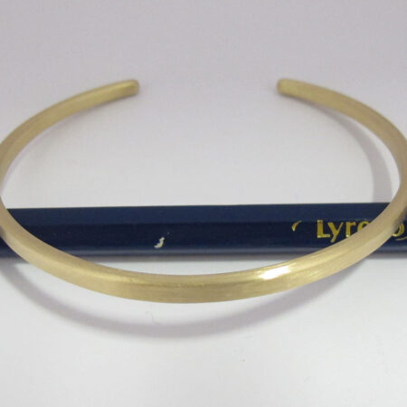Fast armring i 14 karat guld, oval tråd: 3,80 mm bred og 2,10 mm tyk, på billedet er overflade blank poleret.