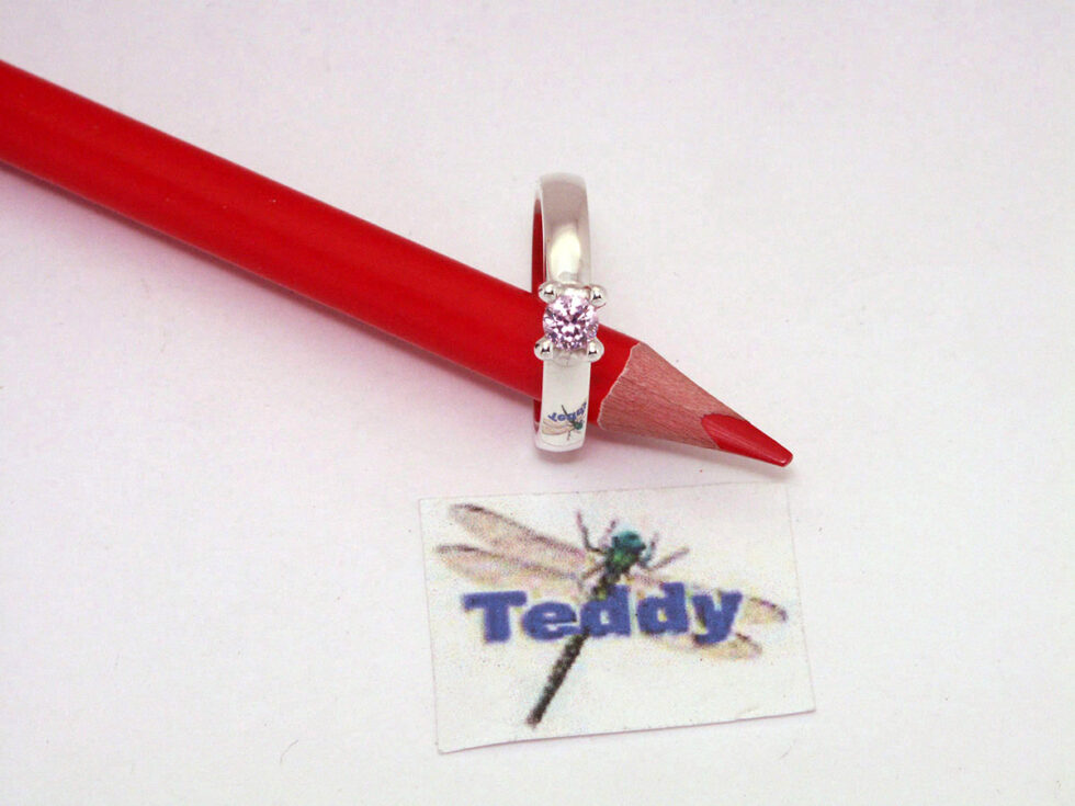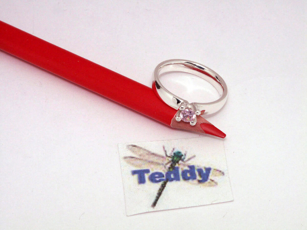 Ring i Sølv 925S med 4 greb og 4 mm pink cub. zirkonia.